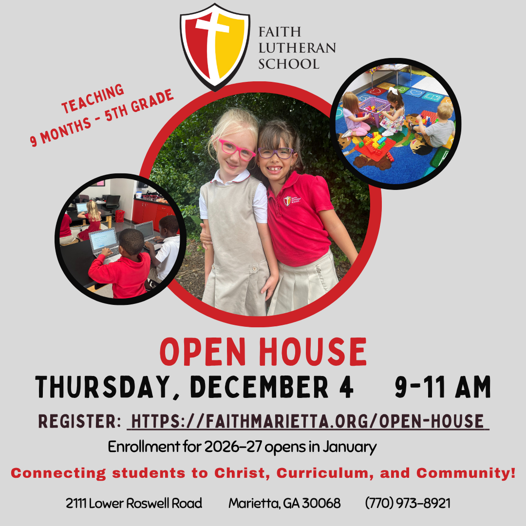 We are so glad to have you take a look at Faith Lutheran School. We offer challenging academics in a Christ-centered environment. Our staff is committed to connecting people to Jesus. You will find limited class sizes and personal attention. You will also find experienced and innovative educators in a loving and nurturing atmosphere who will strengthen your child not only academically, but give them a strong Christian foundation.